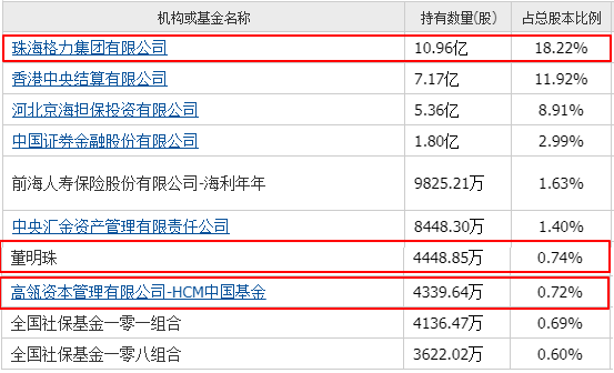 格力电器前十大股东(图源:格力2019年Q3财报)